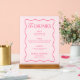 Ajoutez une touche ludique à votre bar de mariage avec ce panneau en acrylique personnalisé Menu Bar Boisson Rose Ondulé. Parfait pour mettre en valeur vos options de boissons, cet enseigne vibrante complète les idées de bar de mariage avec son design unique inspiré du rétro. Idéal pour une décoration de bar de mariage, c'est une pièce exceptionnelle pour un mariage funky, un mariage éclectique ou un mariage coloré. Ses teintes rouges et roses audacieuses en font un élément indispensable pour un thème de mariage rouge et rose ou des idées de mariage à la Saint-Valentin.