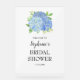 Ce panneau de bienvenue pour baby shower de style aquarelle présente un bouquet de fleurs d'hortensia bleu aquarelle. Personnalisez-le avec le nom de la mariée et la date de la douche nuptiale. Cette affiche fait partie d'une collection comprenant une gamme de produits de douche nuptiale et de mariage assortis. Veuillez visiter notre magasin pour voir la collection complète.