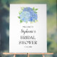 Cette pancarte de bienvenue pour baby shower mariage à l'aquarelle présente un bouquet de fleurs d'hortensia bleu à l'aquarelle. Personnalisez-le avec le nom de la mariée et la date de la baby shower. Cette affiche fait partie d'une collection présentant une gamme de produits de baby shower et de mariage assortis. Veuillez visiter notre magasin pour voir la collection complète.