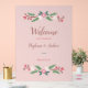 Cette enseigne mariage présente des motifs rustiques de bouquet fleur sauvage, personnalisables avec des noms de couple, date et texte supplémentaire, en police de style manuscrit pour une esthétique mariage douce et romantique.