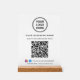 Elevate your counter or reception area with this custom QR code acrylic tabletop sign, designed to make connecting with your business fast, easy, and professional. Featuring a sleek white acrylic panel with an optional modern wood base, this sign highlights your logo, business name, a scannable QR code, and your Facebook and Instagram social media handle in a clean, minimalist layout that complements any space. Perfect for restaurants, cafés, salons, boutiques, offices, clinics, hotels, and events, this tabletop acrylic sign allows customers to instantly view your services, prices, menus, booking page, or website with a single scan. The premium acrylic material offers a polished, high-end look while remaining durable and easy to display on counters, desks, and tables.