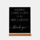 Les cartes mariages et les cadeaux pour la mariée et le marié sont écrits dans la typographie moderne blanche contre l'arrière - plan noir. Tableau d'accueil de mariage moderne. Le Merci est écrit en blanc. Dessins de TamiraZDesigns.