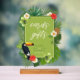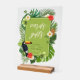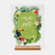 Un panneau "Cartes et Cadeaux" en acrylique mariage avec un cadre vert ressort et une bordure avec un toucan audacieux assis parmi les fleurs d'hibiscus et les feuilles de palmiers. Cette enseigne mariage tropicale est parfaite pour l'été, la plage et les mariages tropicaux, anniversaires et autres événements spéciaux. Recherchez ID577 pour voir les produits correspondants.