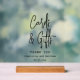 Cartes et Cadeaux Chic Moderne Mariage Événement Acrylique Signes caractéristiques du texte "Cartes et Cadeaux Merci (vos noms et date)" dans le script moderne de calligraphie noire. Personnalisez en modifiant le texte dans les zones de texte fournies. Créé par Evco Studio www.zazzle.com/store/evcostudio