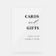 Elégant panneau acrylique mariage "Cartes et Cadeaux" avec un style simple, élégant et propre avec typographie moderne. 8" x 10" est simplement notre taille par défaut, vous pouvez choisir parmi plusieurs options de taille. "REMARQUE IMPORTANTE : signer dans une feuille acrylique de haute qualité avec le texte imprimé en noir et un faux look dépoli derrière, fournir une vue claire du texte dans tous les espaces, et vous donner l'appel gelé pour une fraction du coût! Les petites tailles sont livrées avec un bloc de bois pour tenir, les plus grandes tailles ont besoin d'un chevalet ou d'une surface pour se tenir afin qu'elles ne se déchaîne pas. Cette même conception de panneau est également disponible dans l'option d'impression d'affiche, que vous pouvez trouver dans notre collection". Une partie de notre collection "Minimal, Elegant Wedding and Events Signage" avec une signalisation de coordination disponible. Visitez la collection entière à l'adresse suivante : https://www.zazzle.com/collections/119536700311025072