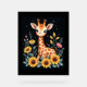 Panneau En Acrylique Charmante Giraffe Entourée De Fleurs Longues Manch