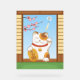 Illustration vectorielle d'un maneki-neko, littéralement traduit du japonais par "chat qui crie". On pense que cette figurine japonaise traditionnelle apporte chance et prospérité à son propriétaire. On les appelle souvent des chats chanceux aussi. Celui-ci est une mignonne version de dessin animé d'un Calico Japanese Bobtail avec sa patte gauche levée dans le geste de claquage japonais et sa patte droite tenant une pièce de koban en or. Un arbre fleuri et une chaudière en verre de furine viennent compléter l'arrière - plan simple.