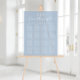 Chic mariage bleu poussiéreux panneau acrylique gelé pour jusqu'à 16 tables avec "nos gens préférés" dans une typographie blanche simple et moderne et un élégant script blanc avec des swashes et vos prénoms et date de mariage réunis par un coeur.