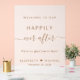 Chic panneau de mariage acrylique gelé avec "Bienvenue à notre heureux après" dans un mélange de typographie or moderne et un élégant script or avec des swashes, "nous sommes tellement heureux que vous soyez ici", vos prénoms se sont réunis par un coeur et votre date mariage.