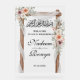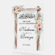 Cadre de fleur d'été moderne chic rose musulman Musulman Musique arabe bienvenue Entrée Acrylique avec Bismillah rahman raheem en calligraphie arabe stylisée. Panneau d'entrée islamique clair parfait pour Fatiha, tulba, fiançailles, henné, douche, nikkah, mariage, etc.