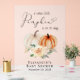 Elégant signe d'accueil acrylique semi-transparent pour votre baby shower d'automne avec "un petit citrouille doux est en route" en typographie simple et un script avec un coeur swash et aquarelles de terre cuite orange et crème citrouilles et bouquets floraux. Personnalisez avec le nom de la future mère et la date de la douche. Précisez le sexe du bébé si vous le désirez (p. ex., "est en route").