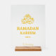 Celebrate the holy month with this elegant, high-quality transparent acrylic sign. Featuring beautiful gold-toned Islamic calligraphy and the Moon Sighting Dua, this modern decor piece is perfect for your Suhoor or Iftar table.