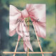 Un magnifique panneau de bienvenue féminin avec un grand arc rose en aquarelle incliné sur le côté et drapé sur la plupart du panneau. Un modèle texte est inclus avec le thème populaire "Elle attache le noeud". Personnalisez avec vos informations d'événement. Ce magnifique panneau acrylique est un choix populaire dans les panneaux de fête et d'événement avec un look moderne.
