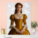 Sumérgete en la elegancia atemporal de este retrato realista de una dama del Renacimiento, vestida con un majestuoso vestido dorado de satén y encaje. El diseño captura con precisión la belleza clásica, los detalles intrincados del bordado, y el porte noble de una época dorada.