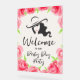 A derby day party acrylic welcome sign features a lady's silhouette bordered with pink watercolor roses. MATCHING items in our collection.