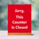 Panneau En Acrylique Désolé, ce compteur est fermé Texte rouge et blanc