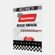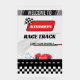Fun course voiture thème garçon's anniversaire fête signe de bienvenue avec l'illustration d'une voiture de course rouge rétro. Le texte dit "bienvenue au xx track".