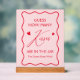 Ajoutez une touche amusante à votre événement avec l'Guess personnalisé Combien de baisers Valentine Fête des mariées Jeu Acrylique Signe. Parfait pour l'amour est dans les idées de douche nuptiale de l'air, ce jeu vient compléter les valentines idée de douche nuptiale, un thème de douche nuptiale valentines, ou un baiser la douche nuptiale miss goodbye. Idéal pour un thème mariage rouge et rose, il crée une fête interactive et mémorable !
