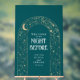 Améliorez votre dîner de répétition avec un élégant panneau d'accueil céleste turquoise et doré avec lune, étoiles, planète et une étoile filante.