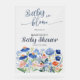 Welcome guests with timeless elegance at Madison's Baby in Bloom baby shower! This premium clear acrylic sign features flowing navy calligraphy: "Baby in Bloom" arched beautifully, "Welcome to Madison's Baby Shower," and "June 15th 20XX." Anchored by a vibrant watercolor wildflower bouquet — stunning dusty blue cornflowers, sunny white daisies with yellow centers, soft pink cosmos, delicate blue forget-me-nots, coral poppy accents, and fresh green leaves. Ideal for boho meadow, spring garden, gender-neutral, or dusty blue themes. Includes sturdy easel stand for effortless display. Matches your full suite: invitations, napkins, plates, enclosure cards. Customizable, durable, and picture-perfect!