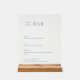 Le panneau acrylique de mariage moderne et élégant pour le menu "the bar" présente un design minimaliste bleu poussiéreux. Personnalisez avec votre menu boisson mariage avec le modèle facile à éditer avec une police de script élégante et une police serif classe. Le panneau acrylique peut être commandé avec ou sans support en bois. Découvrez les objets correspondants dans la collection "Dusty Blue Modern Elegant".