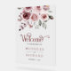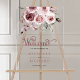 Elegant wedding welcome sign featuring beautiful flowers and modern typography.