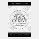 Célébrez le 75e anniversaire du mariage de diamant avec cet élégant panneau acrylique commémoratif. Le numéro 75 au coeur représente artistiquement la lettre "O" en amour, tandis que le lettrage élégant avec confetti en diamant stylisé sur un arrière - plan blanc bordé de panneaux noirs ajoute une touche mémorable pour cette occasion spéciale et une étape extraordinaire. Customisez avec les noms des couples, les dates du mariage et les messages de félicitations. Design © W.H. Sim. Voir plus sur zazzle.com/expressionsoccasions