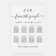 Élégant siège mariage en acrylique dépoli pour jusqu'à 8 tables avec "Nos gens préférés" en typographie simple et un script chic avec des swashes, vos prénoms et la date de mariage unis par un coeur et "Nous sommes si heureux que vous êtes ici" dans la typographie moderne.