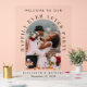 Élégant panneau de réception de mariage en acrylique avec votre photo présentée dans un cadre en arc, "Bienvenue à notre joyeuse fête" dans un mélange de typographies serif simples et classiques, ainsi que vos noms et votre date de réception.