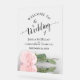 Welcome your wedding guests with this beautiful acrylic sign. The romantic design features a single long stemmed pale blush pink rose lying on its side mirrored in a pool of water. The elegant script calligraphy title includes lacy swashes or flourishes on the ends of the letters, and the names of the couple and wedding date appear below.