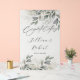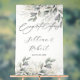 Une Elégante Aquarelle Feuille Félicitations de Mariage Signer conçu avec un groupe de feuilles verts sur un arrière - plan blanc avec des accents de confettis dorés. Le texte comprend : Les prénoms de la mariée et de la mariée et la date du Mariage. Pour personnaliser, insérez simplement votre texte dans notre modèle facile, en remplaçant l'exemple. N'oubliez pas de consulter la collection de Mariages Feuilles Elegant Watercolor pour les articles de papeterie et les accessoires correspondants.