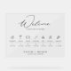 Vous recherchez une façon moderne et élégante d'accueillir vos invités dans votre mariage? Ne cherchez pas plus loin que cette Affiche de bienvenue de mariage minimaliste et élégante avec Timeline! Doté d'un design noir et blanc épuré et simple, ce panneau comprend une chronologie de vos événements de jour de mariage afin que les invités puissent facilement suivre les festivités. Customisez avec vos propres détails en cliquant simplement sur "Personnaliser". N'oubliez pas de consulter le reste de la collection pour trouver les objets correspondants dans ce beau design !