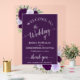 Accueillez vos invités de mariage avec ce magnifique panneau en acrylique. Le design floral bohème rustique présente une calligraphie élégante avec des fioritures délicates ou des enjolivures aux extrémités des lettres, ainsi que vos noms en caractères blancs sur un fond de couleur pourpre prune foncé. La zone de texte centrale est entourée d'une bordure transparente avec des roses peintes à la main et de verdure de jardin dans des nuances de pourpre, de lavande et de prune. Belle façon d'accueillir vos invités tout en ajoutant de la beauté et du style à votre événement.