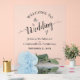Welcome your wedding guests with this beautiful acrylic sign. The romantic design features a single long stemmed pale powder or dusty blue colored rose lying on its side mirrored in a pool of water. The elegant script calligraphy title includes lacy swashes or flourishes on the ends of the letters, and the names of the couple and wedding date appear below.