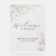 Le design est composé d'élégantes fleurs sauvages roses et d'un script simple "Welcome".