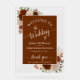 Welcome your wedding guests with this beautiful acrylic sign. The rustic boho chic floral design features elegant script calligraphy with delicate swashes or flourishes on the ends of the letters along with your names in white print on a deep rust orange or burnt umber colored background. The center text area is surrounded by a transparent border with hand painted watercolor roses and garden greenery in autumn shades of rust, sienna, and peach. Beautiful way to welcome your guests while adding beauty and style to your event.