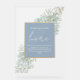 Commémorez ceux qui sont chers et regrettés avec ce panneau mémorial de mariage moderne et élégant. Avec un fond bleu poussiéreux apaisant, des fleurs sauvages bohèmes et des accents dorés, il mélange parfaitement le charme rustique et l'élégance vintage. Le message sincère, "Souhaiter que vous soyez ici", ajoute une touche poignante, ce qui en fait un hommage parfait pour votre jour spécial.