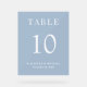 Simple dépoli bleu acrylique acrylique de réception numéro de table de mariage avec "Table" et le numéro de table en élégante typographie serif blanche, ainsi que vos noms et votre date de réception dans la typographie blanche moderne. Créez chaque numéro de table et ajoutez un à la fois à votre panier, puis vérifiez quand tous les numéros sont dans votre panier.