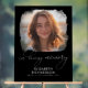 Célébrez la vie de votre être cher avec cet élégant panneau funéraire "In Loving Memory". Ce panneau noir présente une photo chère, élégamment encadrée par un effet d'encre qui dissout doucement les coins de l'image. Cet élément de design unique ajoute un sens de profondeur et d'importance, ce qui augmente l'impact global de l'hommage. Le texte "In Loving Memory" est élégamment scénarisé, ressemblant à une note manuscrite. Cette police moderne et tendance ajoute une touche simple mais profondément personnelle au design général. Si vous recherchez quelque chose de vraiment spécial et unique pour votre service commémoratif, ne cherchez pas plus loin. Ce panneau photo funéraire allie sophistication, élégance et émotion profonde pour créer un hommage approprié à votre être aimé.