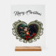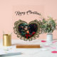 Enfant Elfe mignon en manteau à capuchon vert avec ornement de Noël - Imaginaire magique Conception de vacances. Un petit elfe mignon avec de grands yeux et des oreilles pointues porte un manteau à capuchon vert taillé en fourrure et tient un ornement de Noël orange brillant. Entourée de boîtes-cadeaux avec rubans rouges, branches de pins et baies, cette scène de vacances magique est à la fois festive et mystique. Le cadre sombres et orné avec vue sur une forêt enchantée en fait un design parfait pour les amateurs d'imaginaires, les amateurs de Noël et l'art de vacances magique.