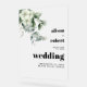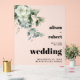 Quel joli et élégant signe de bienvenue ! La combinaison du matériau acrylique gelé translucide, orné de branches d'eucalyptus, de fleurs blanches et de feuilles verts sauge, crée une ambiance douce et romantique qui donne le ton d'une belle célébration. La typographie audacieuse ajoute une touche personnelle, ce qui en fait un moyen unique et réfléchi d'accueillir vos invités mariages.