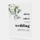 Bienvenue dans votre mariage avec ce joli panneau acrylique. Il présente des branches d'eucalyptus avec des fleurs blanches et du feuillage vert sauge dans le coin supérieur gauche. Le panneau est transparent, tandis que la typographie audacieuse chaudement invitations participants pour célébrer votre union.