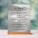 Le poème inspirant, "Do It Anyway", est présenté sur une belle photo en gris, noir et blanc d'une plage de mer brumeuse. L'auteur de ce poème spécifique est inconnu. Disponible en différentes tailles, les deux plus petites tailles disponibles avec un support en bois optionnel pour l'utilisation de table.
