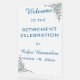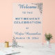 Ce panneau acrylique modifiable présente des messages et des informations sur un événement sur un look de verre dépoli et avec des fleurs bleues dans deux coins. Le texte est modifiable, allez-y et changez les détails ainsi que la couleur, la taille et le style de la police. Ce signe peut être utilisé pour tout événement : retraite, anniversaire, anniversaire, etc. Profitez de votre nouveau signe acrylique Fleurs Bleues Editable!