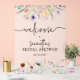 De beaux fleurs sauvages d'aquarelle et vos détails en lettrage chic sont présentés sur ce panneau ACRYLIC de bienvenue de douche nuptiale. Objets et plus de couleurs dans notre collection.