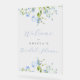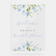 Une belle douche nuptiale panneau acrylique d'accueil avec des fleurs d'aquarelle bleu clair, correspondant à notre invitation "quelque chose de bleu avant "Je fais" nuptiale
