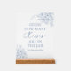 Ajoutez une touche charmante à votre événement avec le panneau acrylique personnalisé "Devinez combien de baisers" pour une baby shower "Something Blue". Parfait pour créer des moments inoubliables, ce design complète les idées de baby shower "something blue" et améliore n'importe quel thème de baby shower "something blue". Idéal pour des idées élégantes de baby shower bleue, ce panneau s'intègre parfaitement dans votre décoration de baby shower "something blue". Célébrez votre baby shower bleue avec une touche de tradition et de style. Un ajout charmant à votre collection "something blue", cette pièce est parfaite pour une célébration "something blue avant que je ne le fasse", en particulier pour un thème de baby shower "something blue avant que je ne le fasse".
