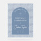 An arched blue first communion design recommended for a boy, that combines the old and the new: a modern blue arch on a vintage blue floral pattern on transparent background. The name is written in script. The text is white, inside the blue arch, with a white cross in the upper part, above most of the text, and an arched text for the welcome message above the cross.