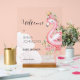Fêtez l'arrivée d'une petite princesse avec cet adorable panneau d'accueil en baby shower flamand rose sur un arrière - plan transparent ! Doté d'un flamant à l'aquarelle charmant portant une couronne fleurie et une tiare dorée, ce design respire l'élégance et le plaisir, ce qui en fait un baby shower tropical, fleuri ou girly. L’affiche est entièrement personnalisable avec le nom de la maman et la date de l’événement.