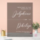 Panneau de bienvenue mariage acrylique imprimé avec du noir translucide et vos noms dans un grand script blanc. Mariage bienvenue en blanc et noir transparent avec vos noms, date mariage et emplacement mariage. Bienvenue à vos invités mariages avec ce panneau d'accueil en acrylique noir translucide avec de jolies polices blanches et une flèche élégante.